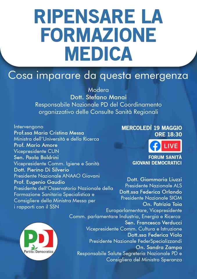 Guarda il webinar promosso da il Forum Sanità Giovani Democratici con la Ministra Messa, Parlamentari, tecnici e rappresentanti degli specializzandi in osservatorio per discutere di come riformare il sistema. Dall'imbuto formativo al percorso formativo degli specializzandi all'interno dei loro reparti.