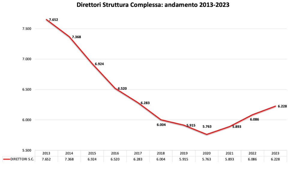 SCARICA IL GRAFICO - Andamento dei Direttori si struttura complessa 2013-2023