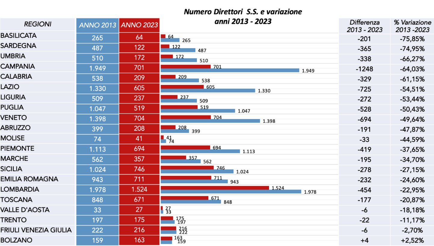 SCARICA IL GRAFICO - Variazione Direttori SS 2013-2023 aree geografiche