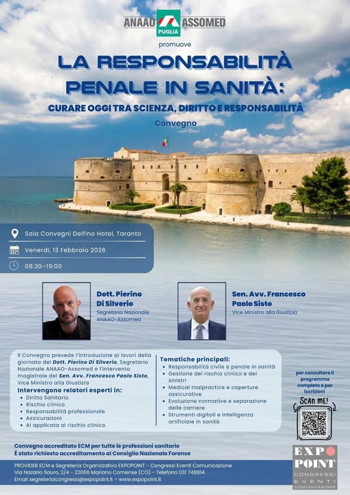 Partecipano Pierino Di Silverio, Segretario Nazionale Anaao Assomed e Paolo Sisto, Vice Ministro alla Giustizia